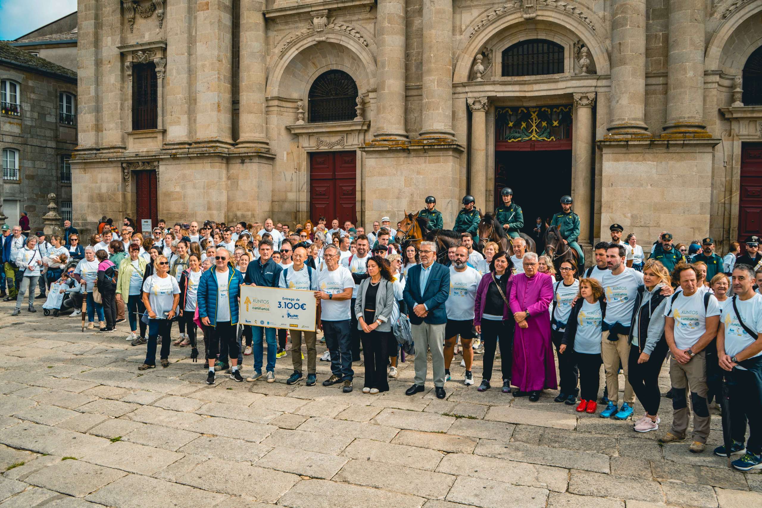 Amigos del Camino de Santiago de Lugo organizó este domingo, 28 de septiembre, la segunda edición de la ruta solidaria ‘Xuntos e Seguros, Camiñamos’, iniciativa impulsada en colaboración con la Guardia Civil y patrocinada por la Xunta de Galicia, Gadis y Atalaya Comunicación. Participaron en ella más de 300 personas, lo que permitió hacer entrega a ALUME Saúde Mental, asociación lucense por la recuperación y la integración de las personas con trastornos mentales, un cheque por valor de 3.100 euros.